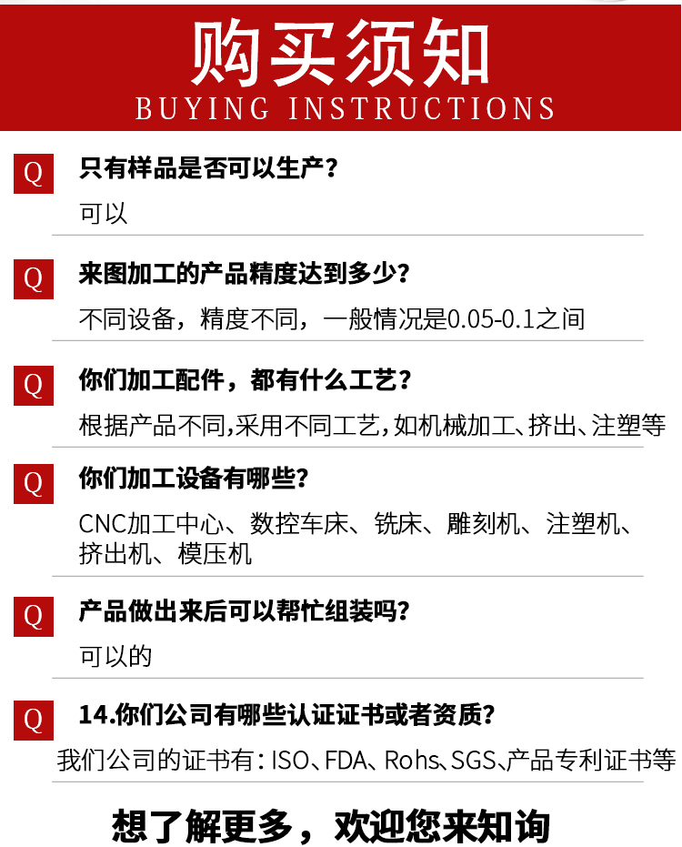 公司擁有一整套進(jìn)口的注塑生產(chǎn)設(shè)備和全套先進(jìn)的CNC數(shù)控加工設(shè)備,