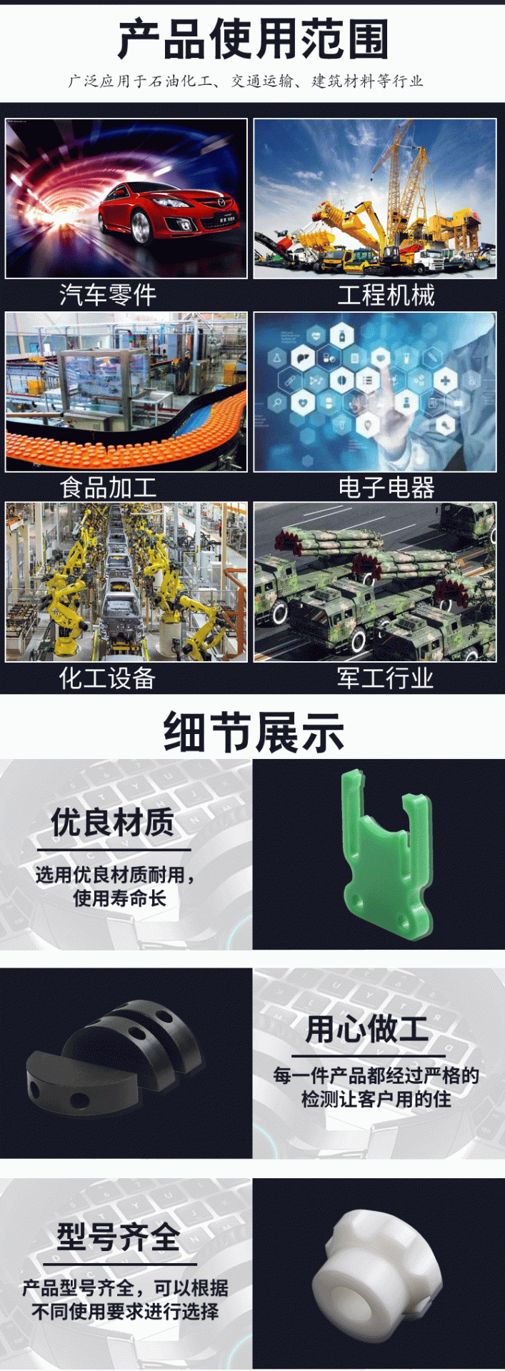 物流輸送設(shè)備、包裝機(jī)械設(shè)備、輸送機(jī)設(shè)備等行業(yè)的工程塑料配件加工