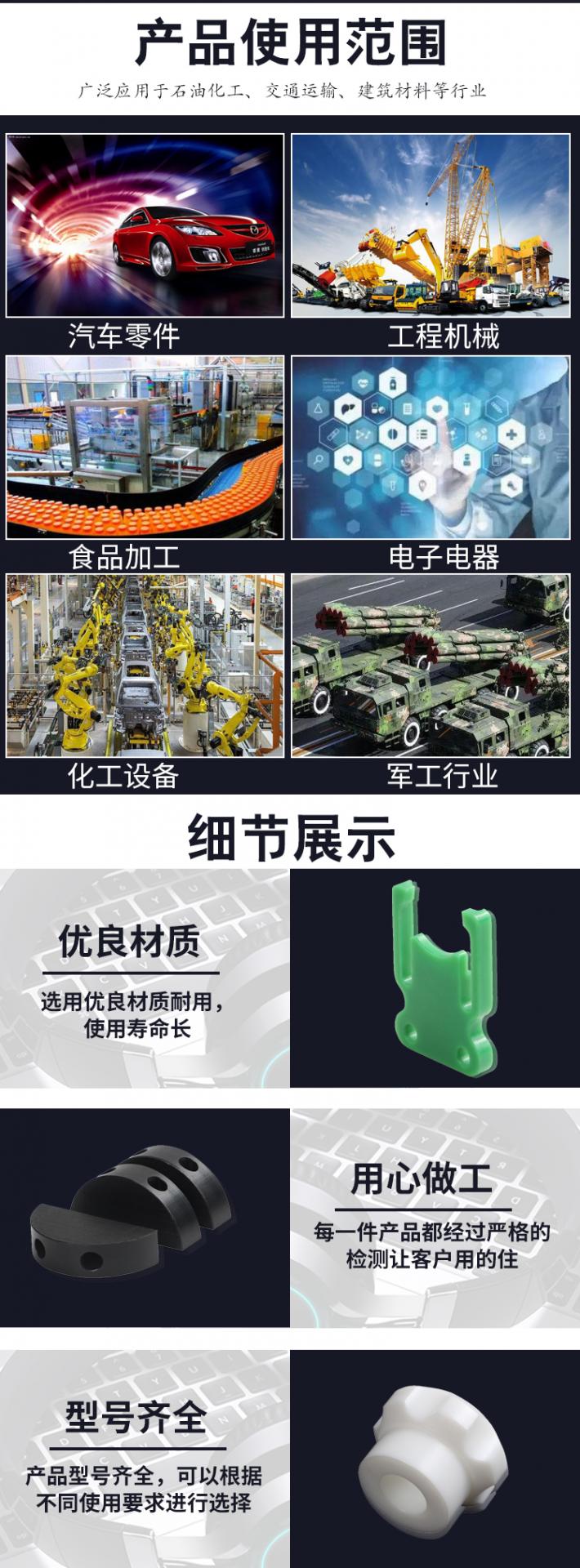 物流輸送設備、包裝機械設備、輸送機設備等行業(yè)的工程塑料配件加工