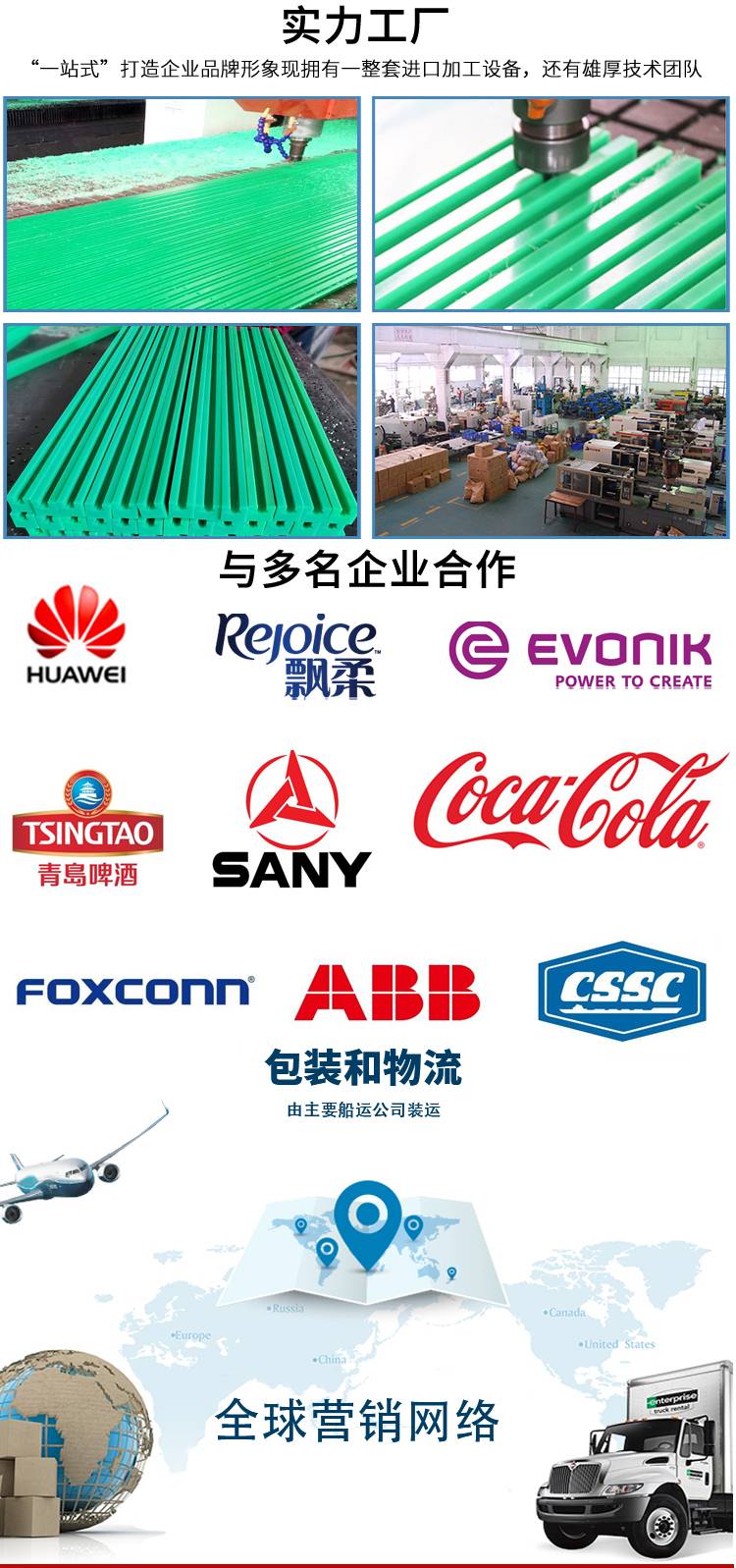(如:UHMW-PE彎軌、UHMW-PE導軌、UHMW-PE托輥、UHMW-PE板材、UHMW-PE棒材、