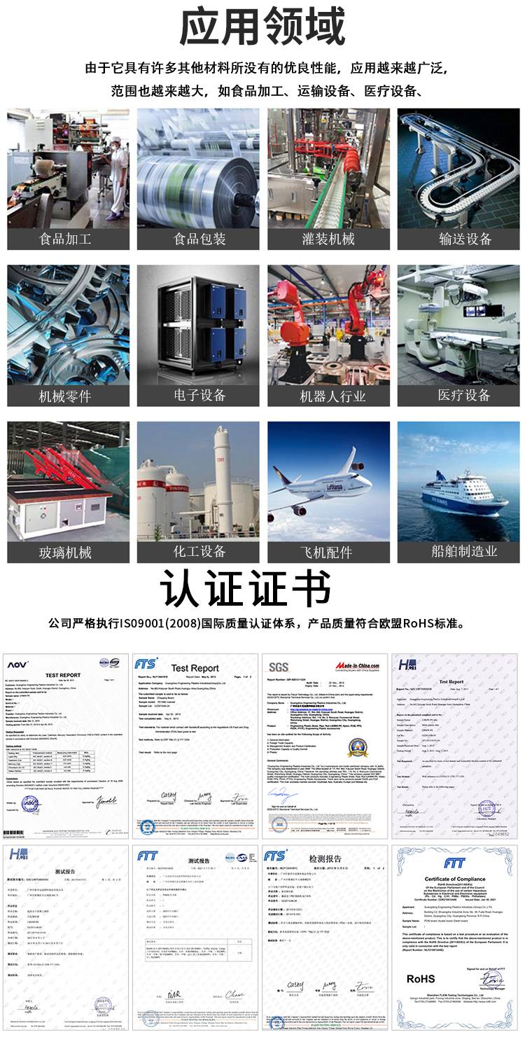 UHMW-PE、含油尼龍、MC尼龍、POM、PP、PE1000,PTFE,PEI,